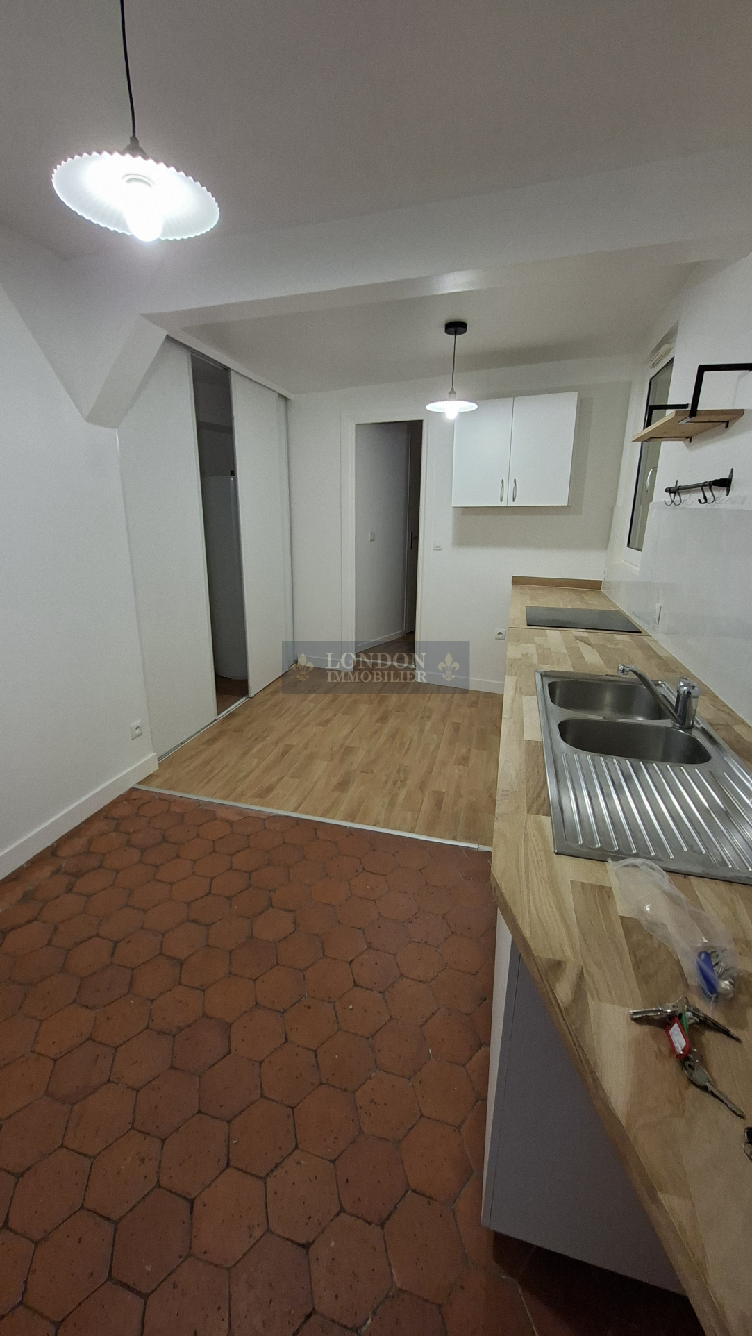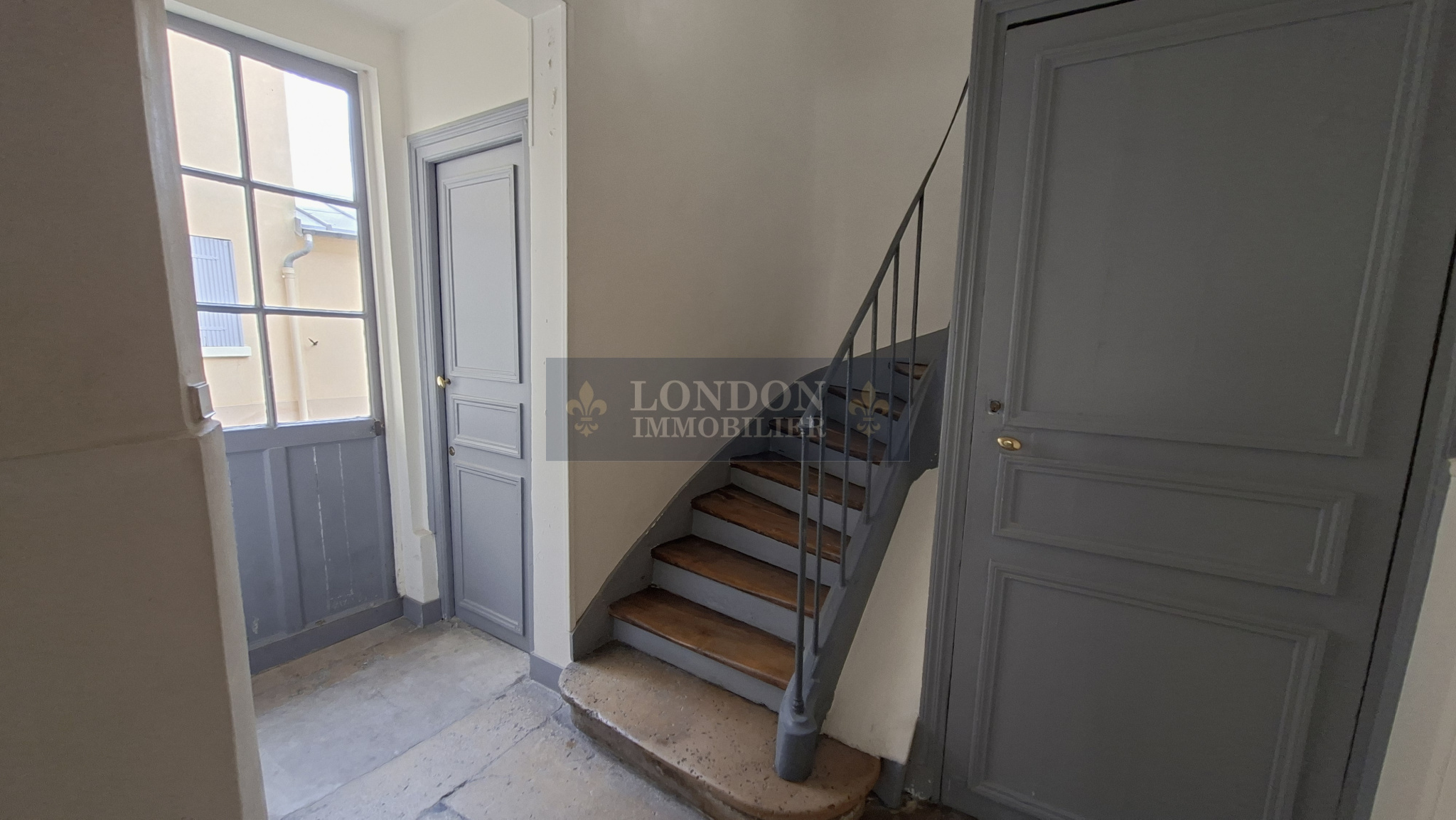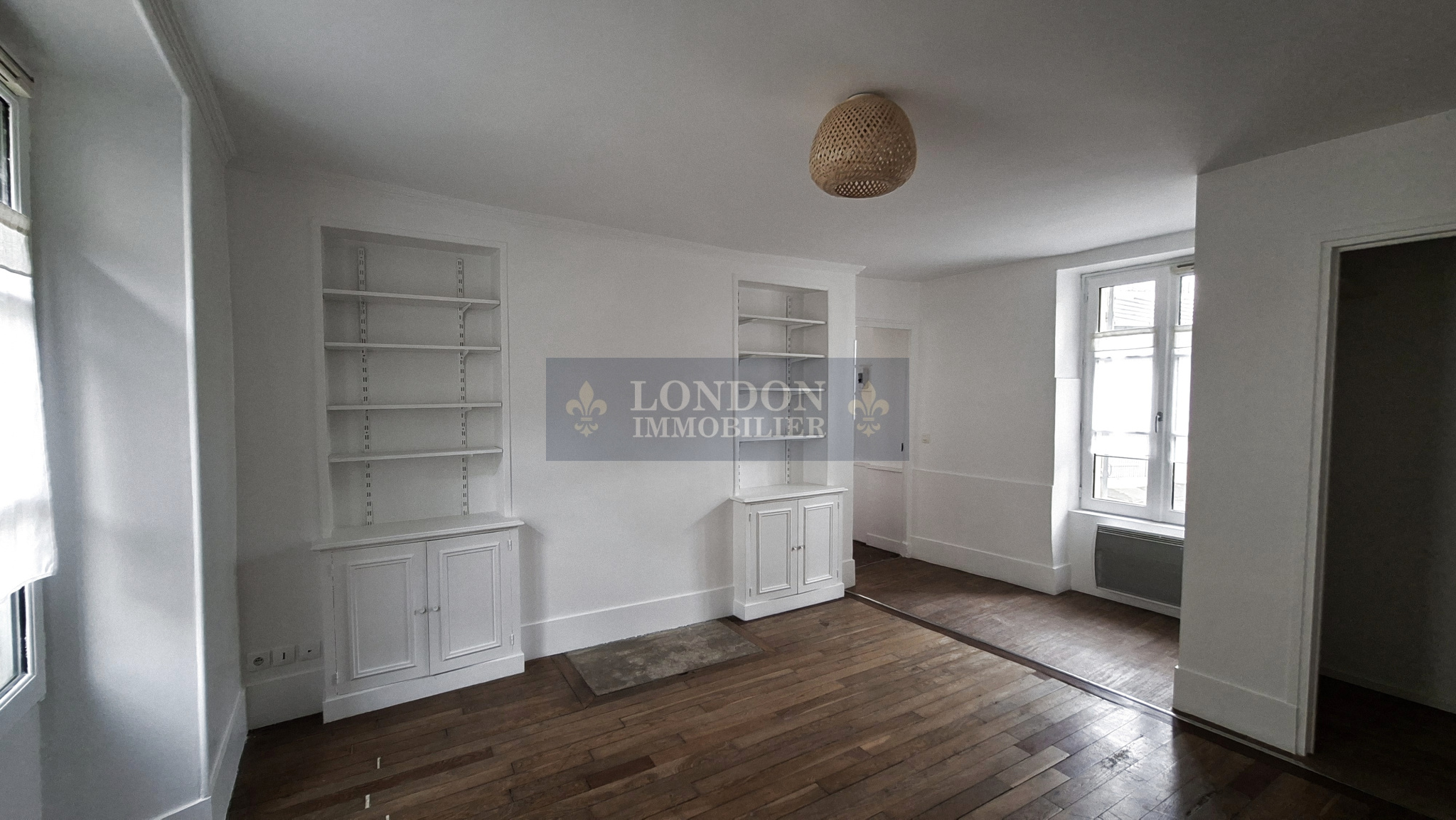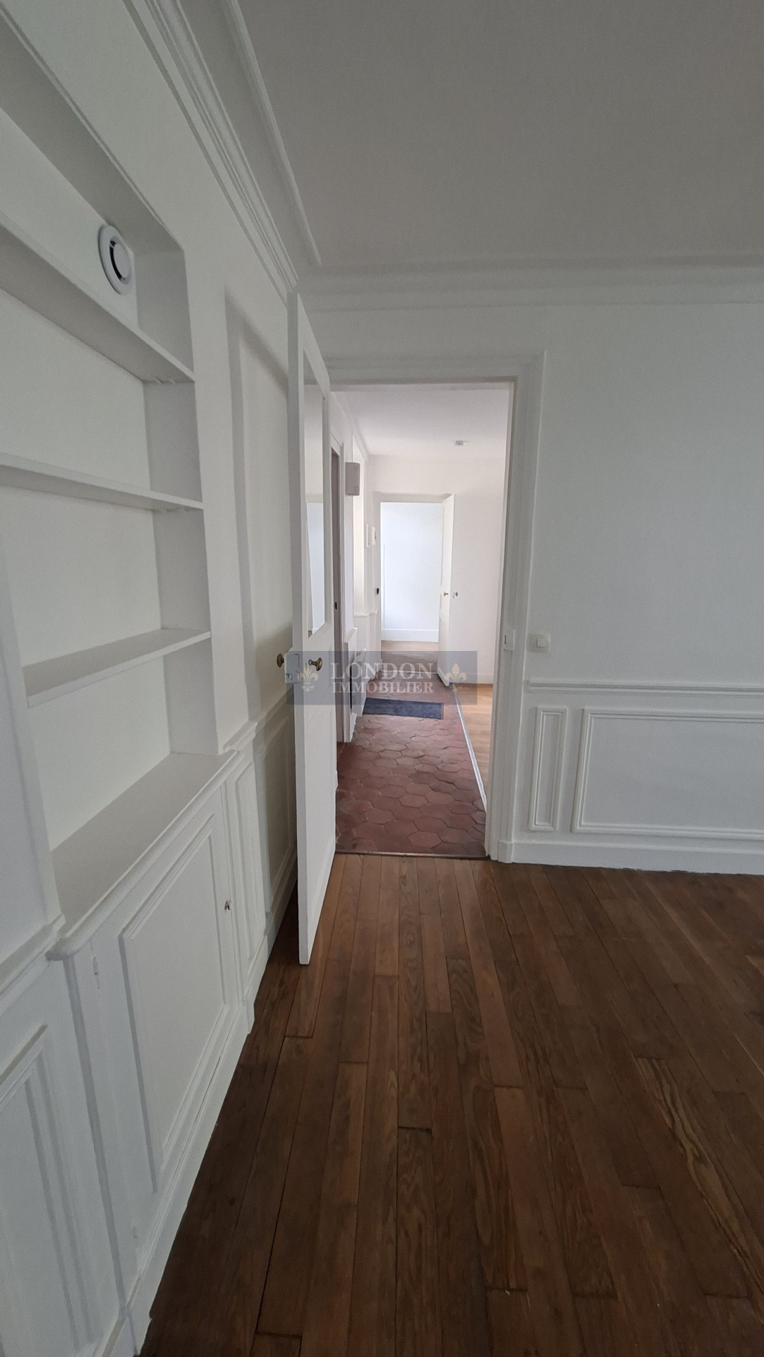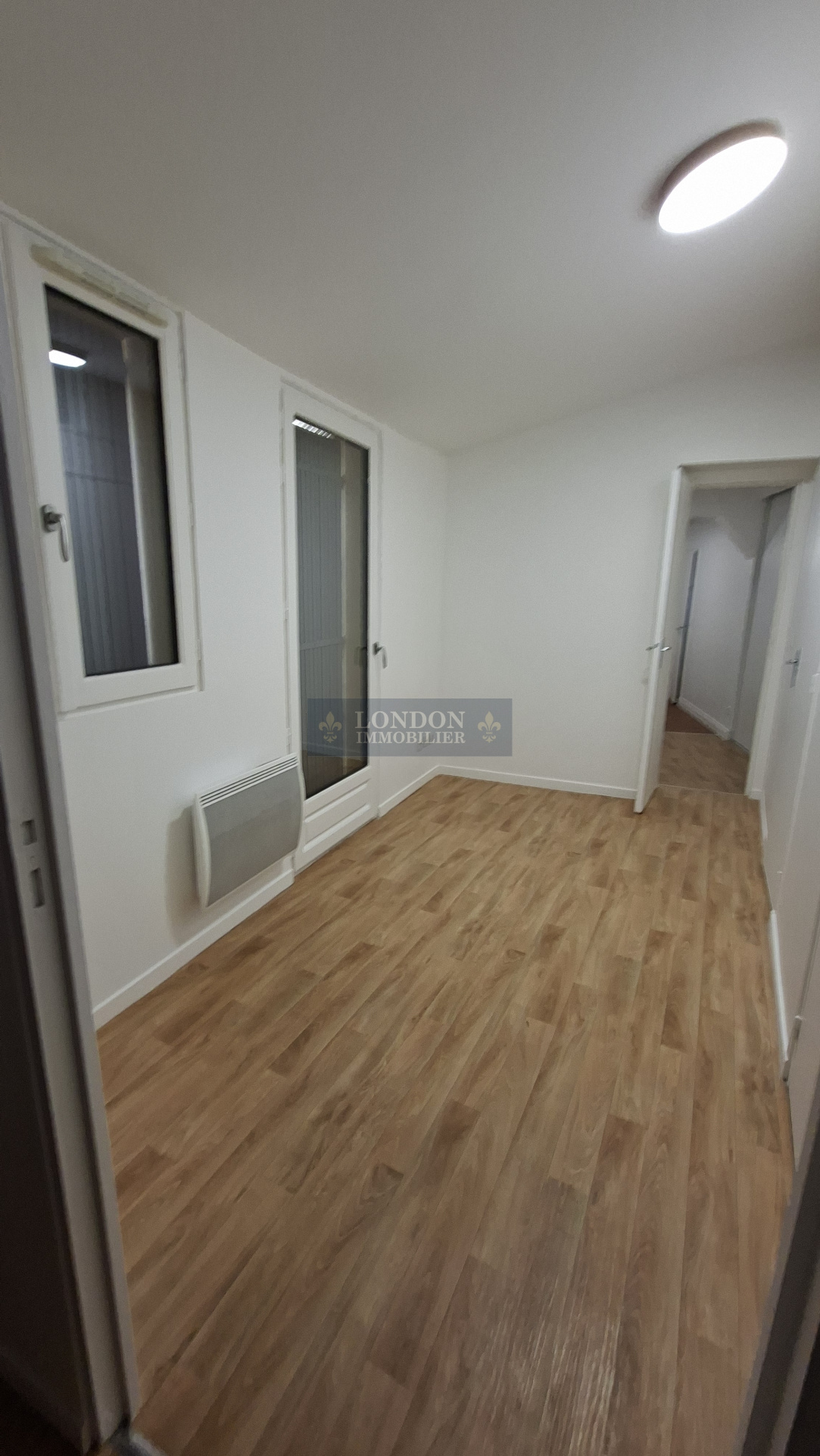 en rez de chaussée sur cour commune, comprenant : une grande entrée, desservant : 2 chambres, séjour, cuisine aménagée semi équipée, salle de bains, wc individuel, dégagement (placard/ buanderie), espace (bureau ou salon), salle d'eau, une chambre