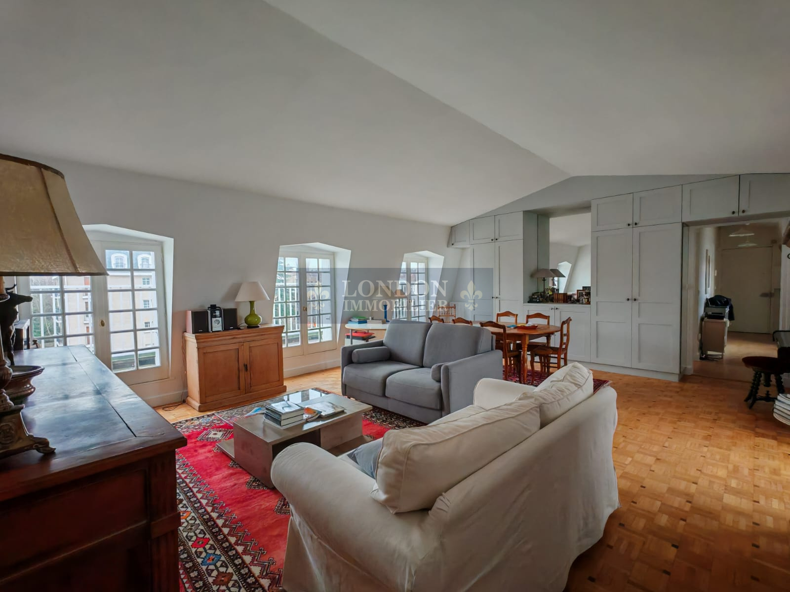 Versailles (78000)Au quatrième et dernier étage d'une copropriété bien entretenue, appartement loft de 65,86 m2 Carrez (72,97) m2 au sol ) disposant d'une exposition est/ouest avec 2 terrasses et vue panoramique sur Versailles.