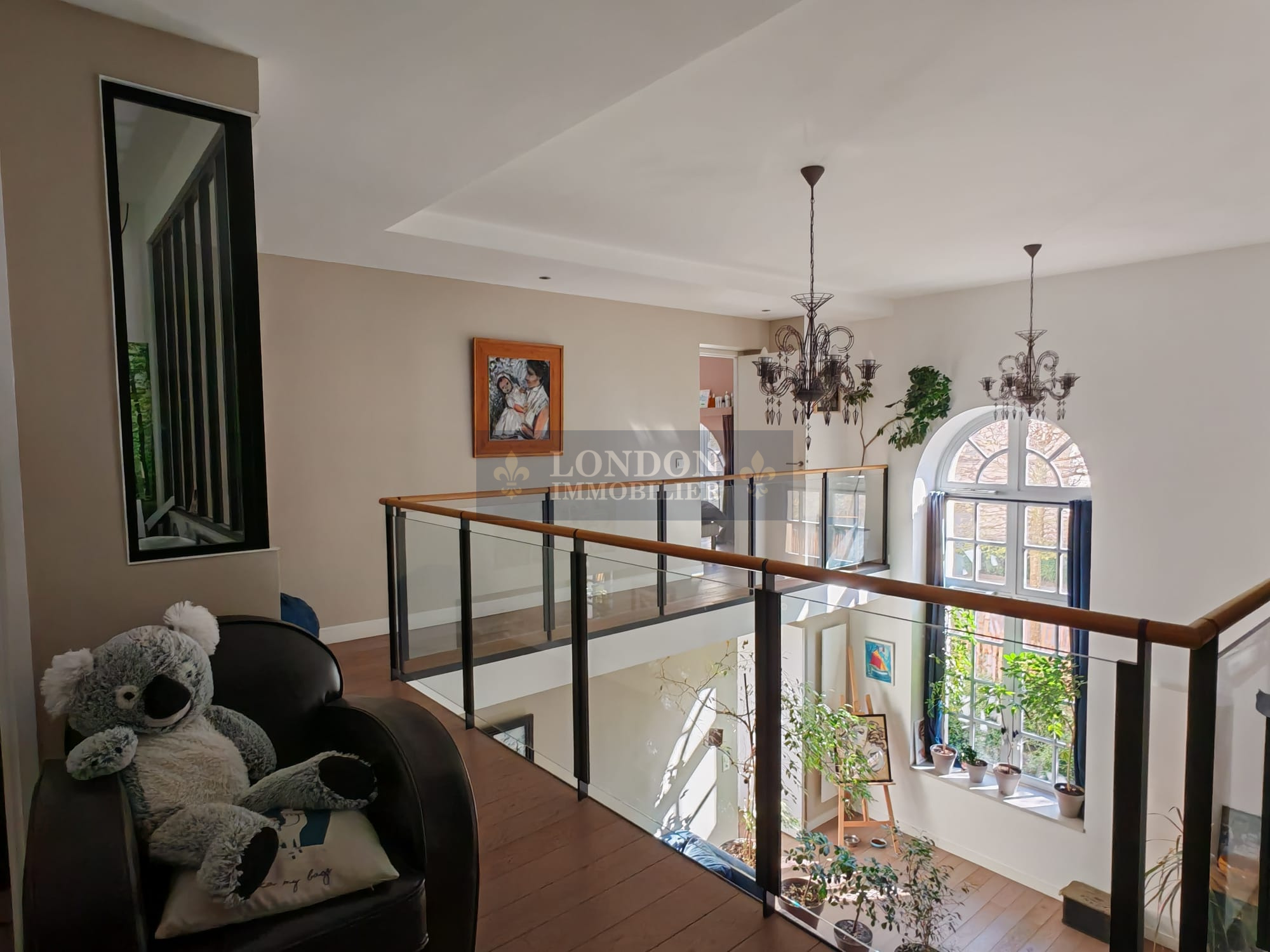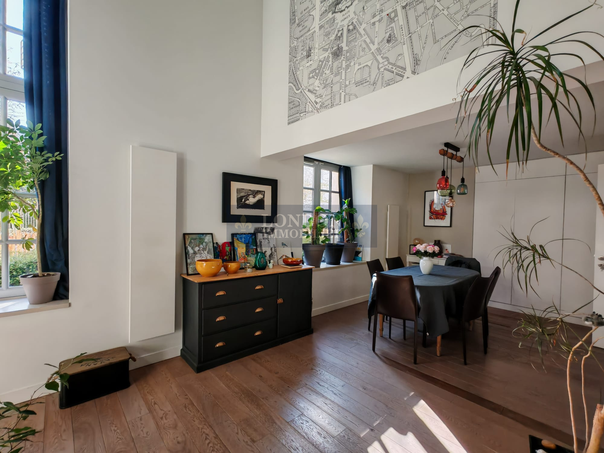 En duplex: 3 chambres, un bureau, grande mezzanine, salle d'eau.