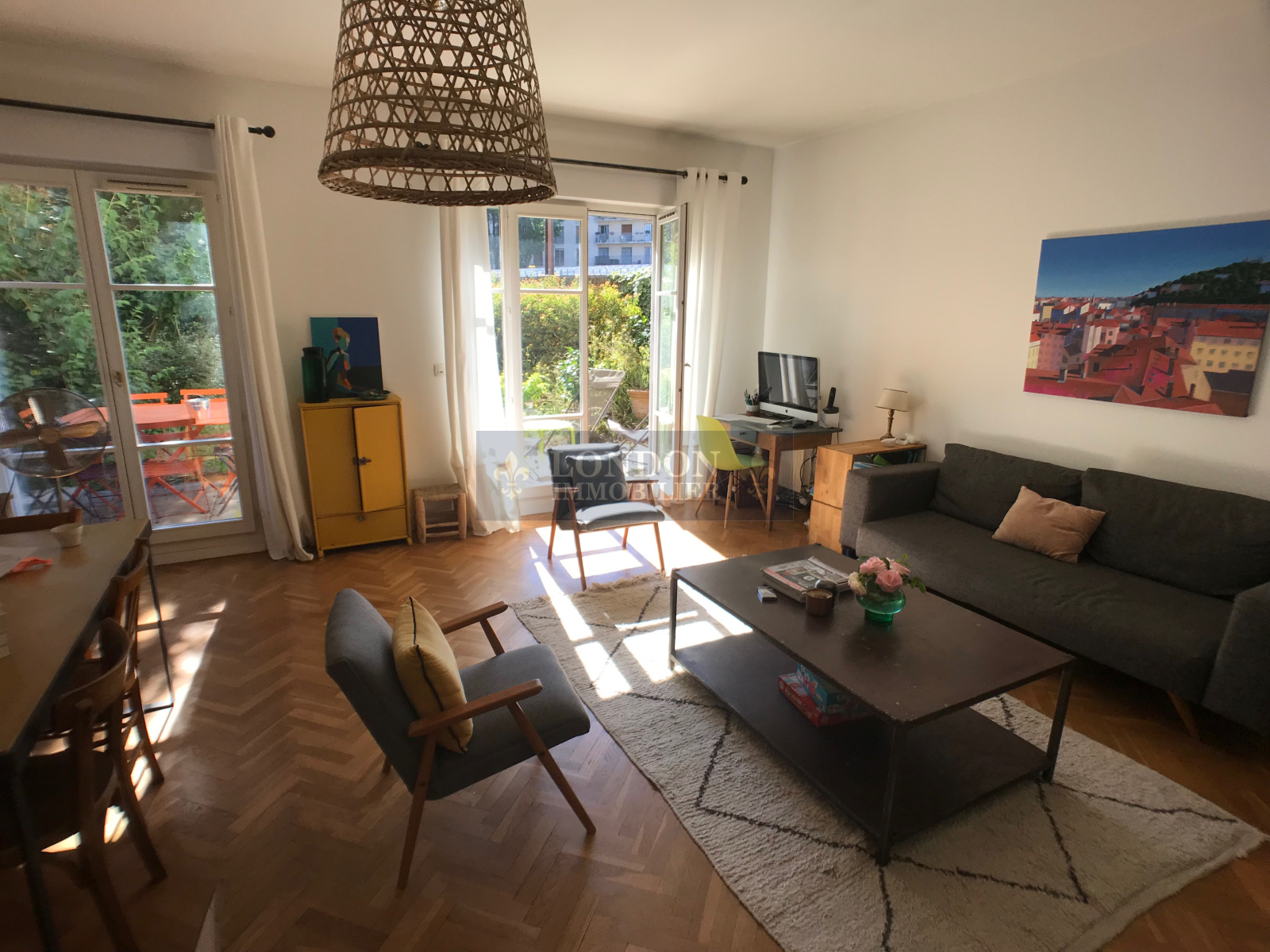 SUR DEUX NIVEAUX : Comprenant entrée, séjour sur terrasse, cuisine aménagée équipée, wc