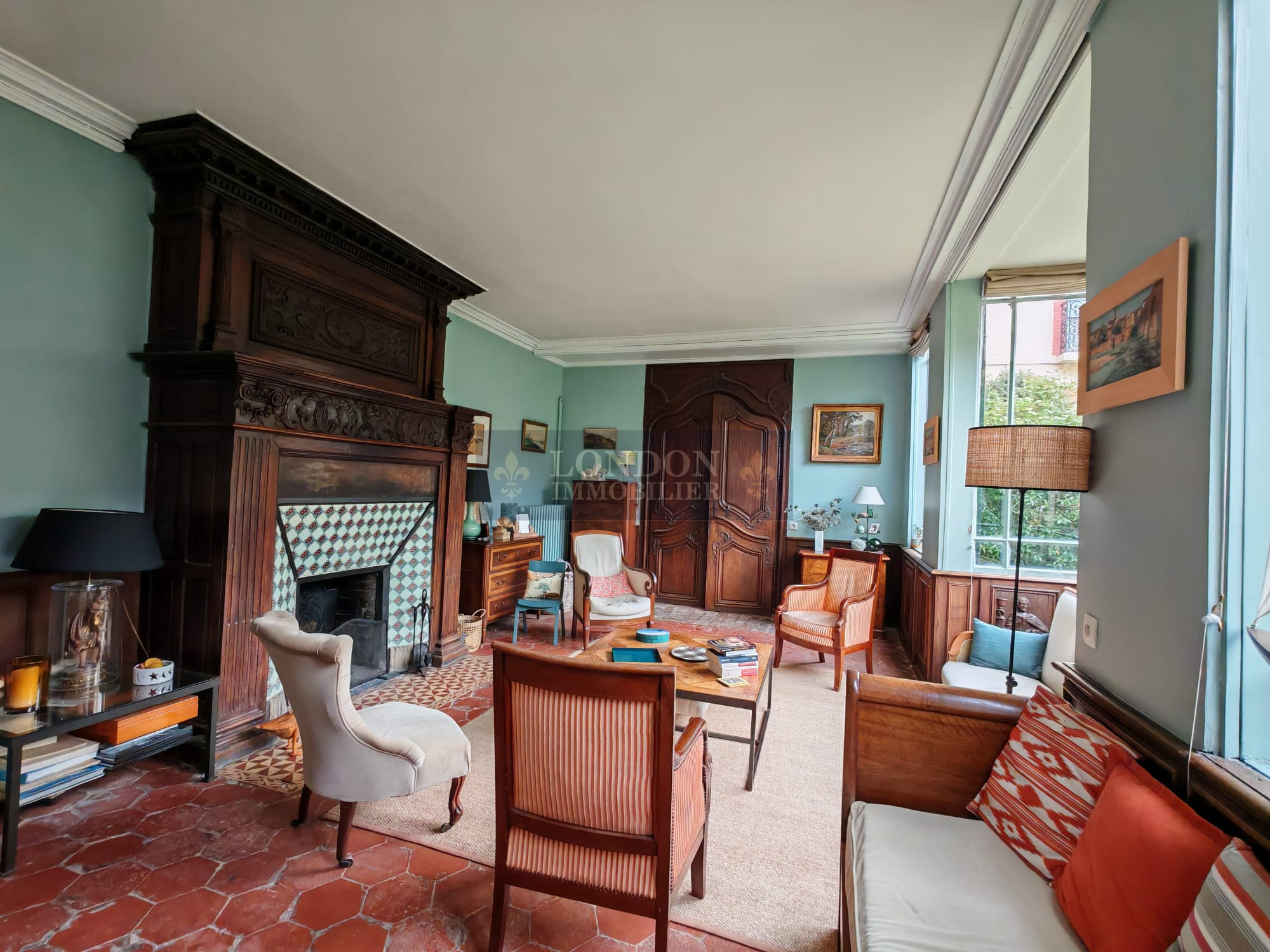 En rez de jardin : grande entrée desservant un salon avec cheminée vue jardin, cuisine dinatoire avec accès jardin, un wc, local buanderie/chaufferie et une pièce à vivre (chambre possible) avec accès cour fermée.