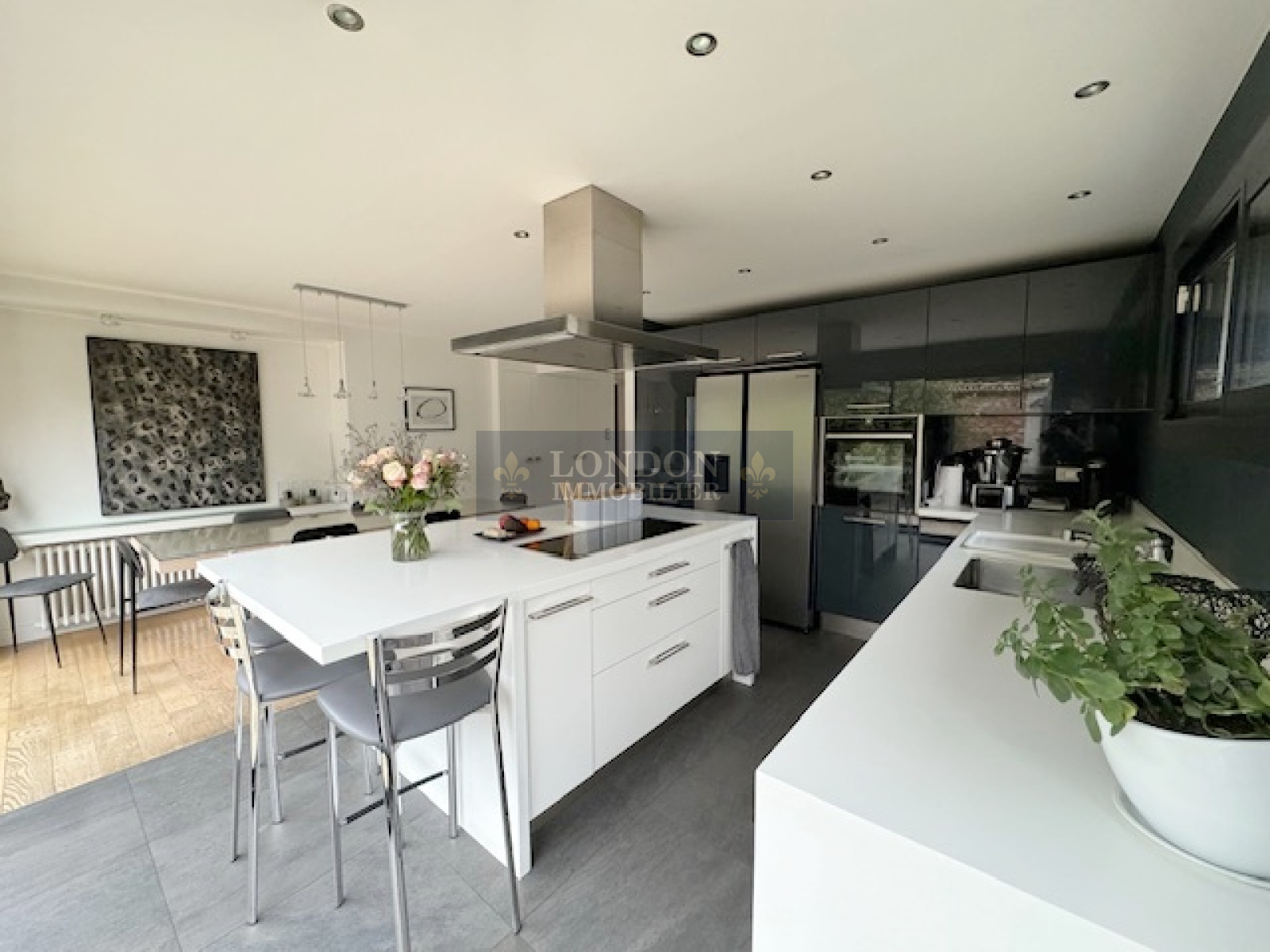 rez de chaussée : entrée, cuisine équipée dinatoire, 2 salons, buanderie, wc, suite parentale, dressing, salle de bains - terrasse