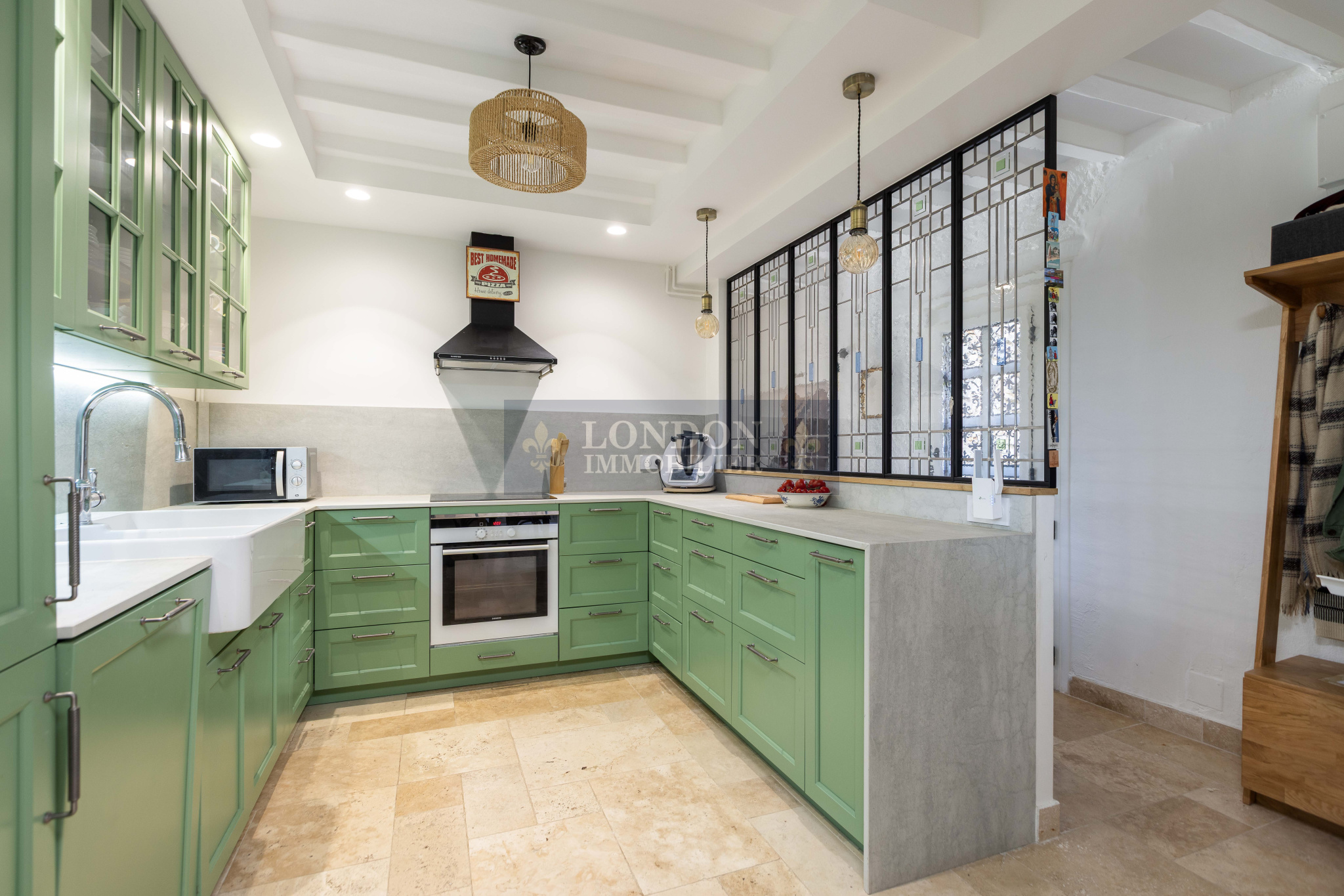 La maison, d'une surface carrez de 160 m2 (195 m2 habitables) est en parfait état et a été entièrement rénovée avec goût par un architecte grâce à de très beaux matériaux qui lui confèrent un charme provençal.