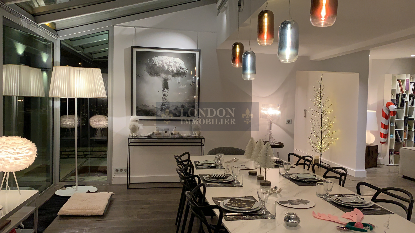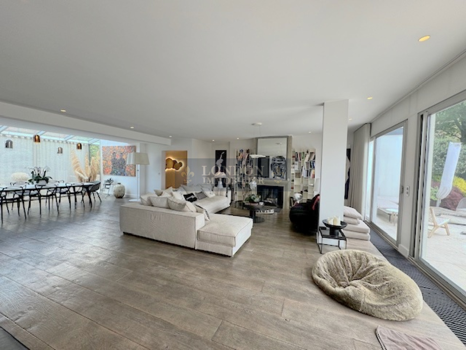 Entrée/vestiaire, wc, 4 pièces de réception baignées de lumière ouvrant sur une grande terrasse exposée au Sud, grande cuisine américaine équipée/office/buanderie. Rénovation complète en 2019 avec prestations haut de gamme.