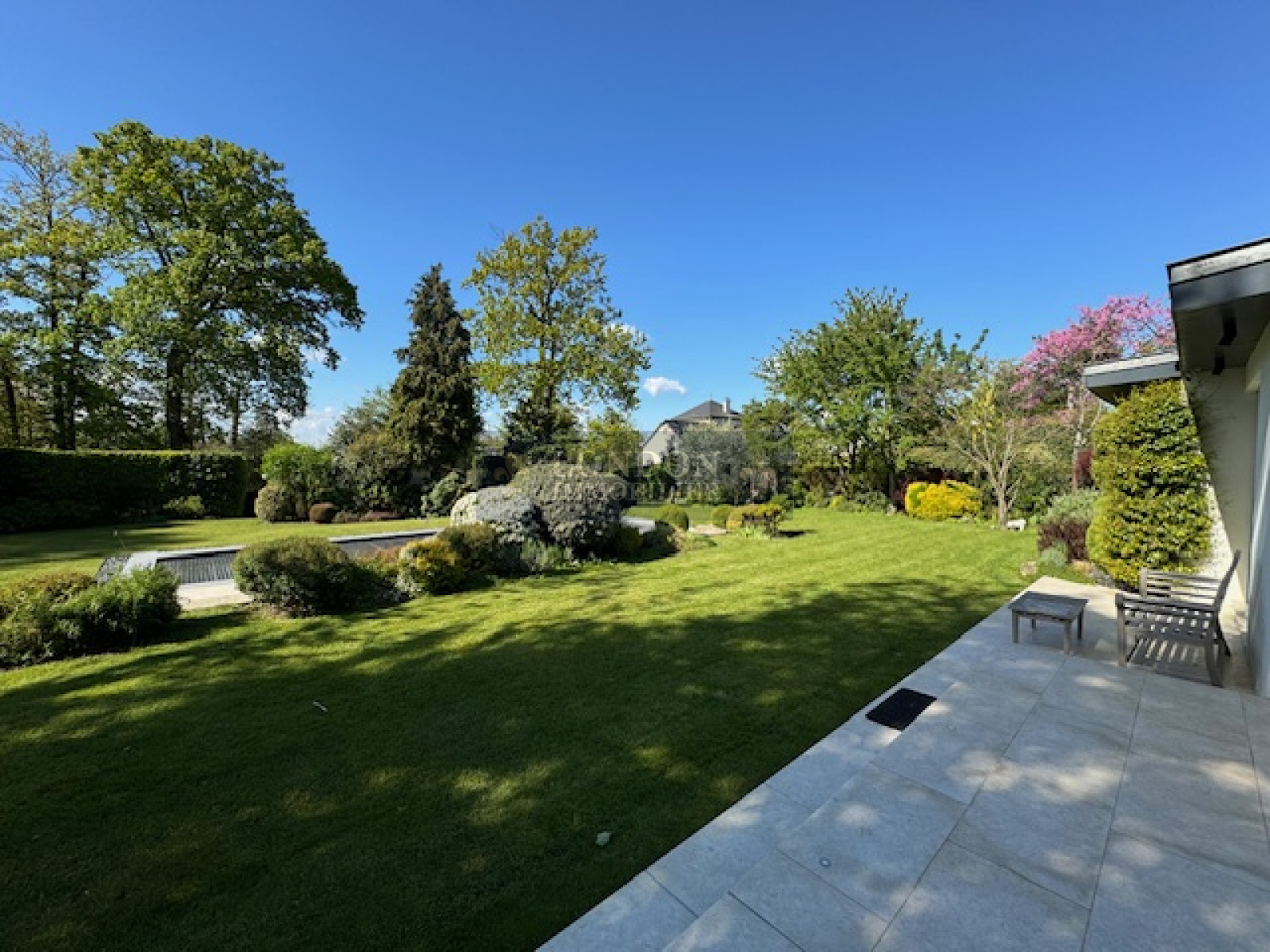 Le Chesnay (78150)Exceptionnelle maison d'architecte de 280 m2 habitables de plain-pied sur une parcelle arborée et végétalisée de 1445 m2.